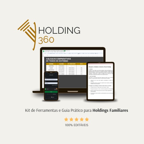 O Holding 360 é um kit de ferramentas e guia prático desenvolvido especialmente para advogados e contadores que desejam iniciar ou aprimorar suas práticas em Holdings Familiares e Planejamento Sucessório. Com este guia, você terá em mãos todas as ferramentas e orientações necessárias para criar e gerenciar Holdings Familiares e realizar um planejamento sucessório eficaz.